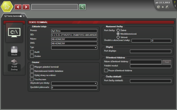 Provoz: Zobrazuje, pod kterým provozem je terminál veden ve Struktuře organizace. Zde se nedá změnit.